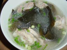 凈鍋內(nèi)加入1000克清水,放入排骨、蔥段、姜片、黃酒,用旺火燒沸,撇去浮沫,再開(kāi)用中火燜燒約20分鐘,倒入海帶塊,再用旺火燒沸10分鐘,揀去姜片、蔥段,加精鹽調(diào)味,淋入香油即成。